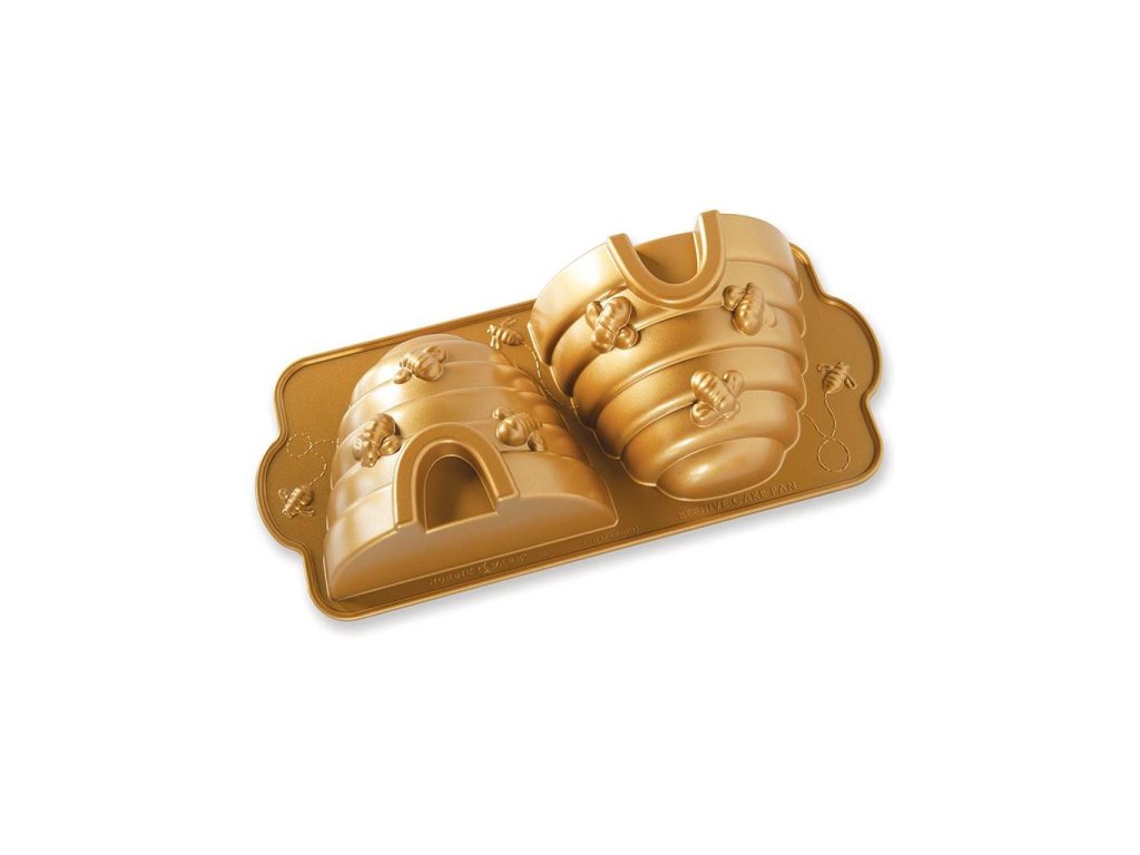 Forma na veliký včelí úl je jako stvořená pro různá medová těsta, od nadýchaného oříškového piškotu s medem až po perníkové medové těsto z žitné mouky. Příprava trojrozměrného koláče je snadná: ve formě upečete dva díly, které po vyklopení a vychladnutí seříznete a slepíte například oblíbeným vanilkovým krémem. Celý úl pak můžete obléknout do medového marcipánu nebo jen pocukrovat.