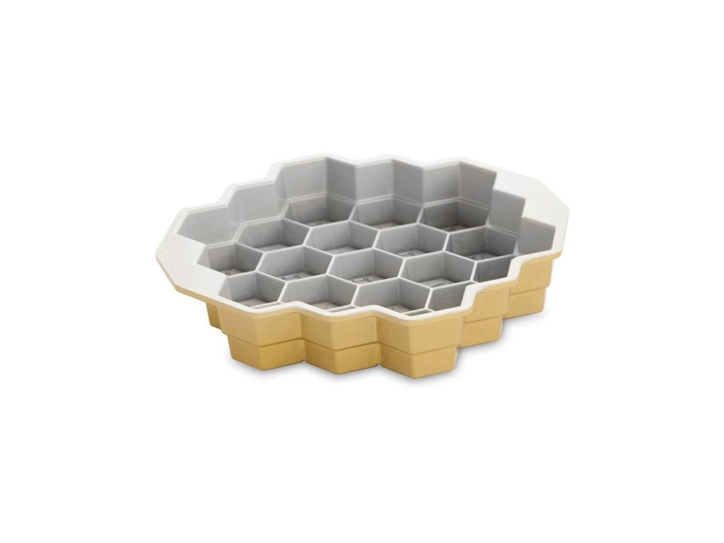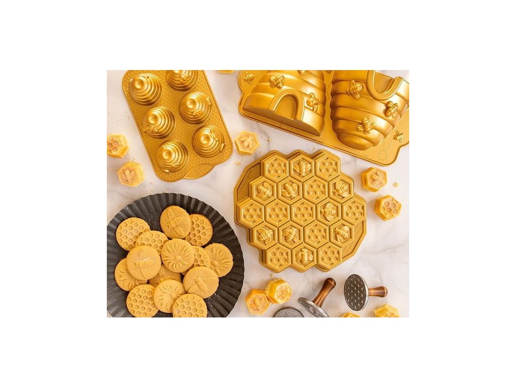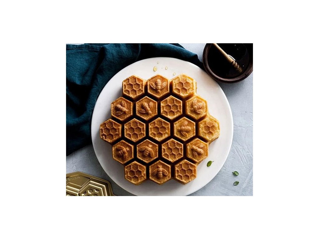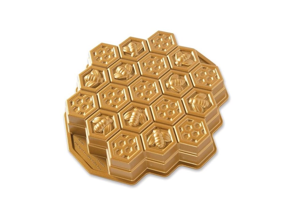 Zlatá forma ve tvaru včelí plástve Honeycomb Bundt® z jedinečné výběrové série Premier Gold Collection americké značky Nordic Ware je vyrobena z vysoce kvalitního, masivního litého hliníku s nepřilnavou vrstvou. Porcování moučníku z formy rozdělené na 19 dílků je velmi snadné. Koláč stačí opatrně rozdělit pomocí rukou nebo lehce dokrojit nožem. Každý dílek je stejně veliký, tak se hosté nebudou hádat o největší porci, ale o to, jestli na ně vyjde kousek s včeličkou.