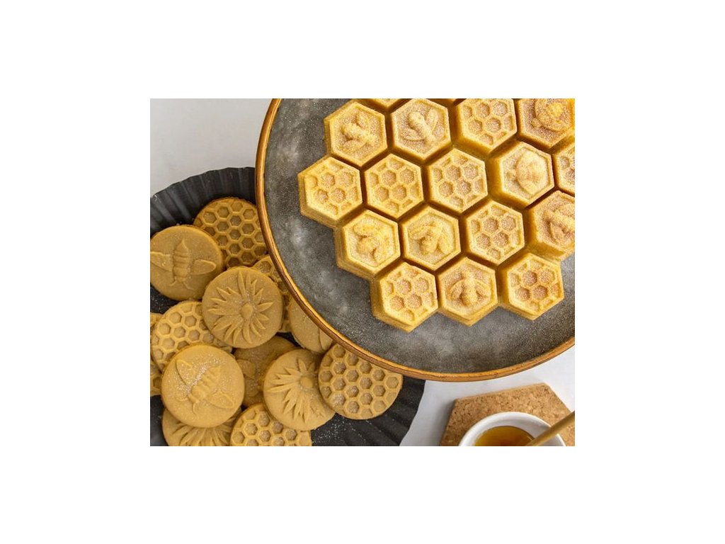 Dělená forma ve tvaru včelí plástve je jako stvořená pro různá medová těsta, od nadýchaného oříškového piškotu s medem až po perníkové medové těsto z žitné mouky. Moučník bude vypadat naprosto neodolatelně s čokoládovou polevou a medovými křupinkami, ale i jen tak pocukrovaný.