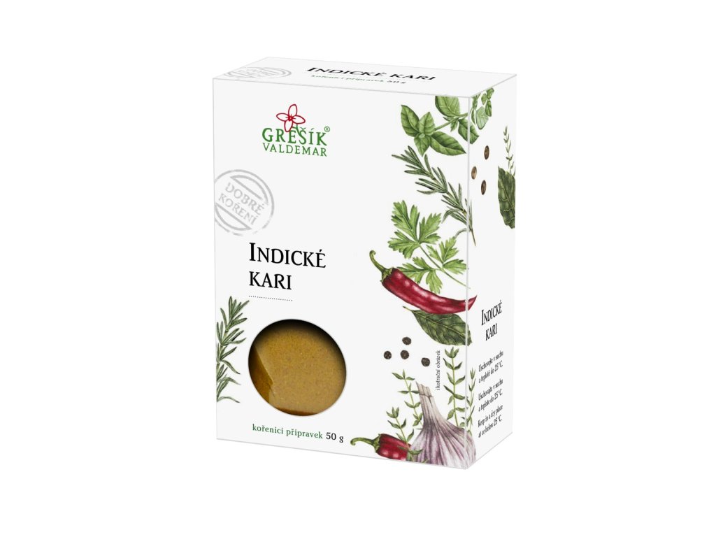 Aromatické, mírně pikantní kari, pro přípravu polévek, omáček, rýže, drůbeže a ryb.Složení: koriandr, kurkuma, pískavice semeno, chilli, římský kmín, zázvor, česnek, rýžová mouka, jedlá sůl (max. 4,4 %)