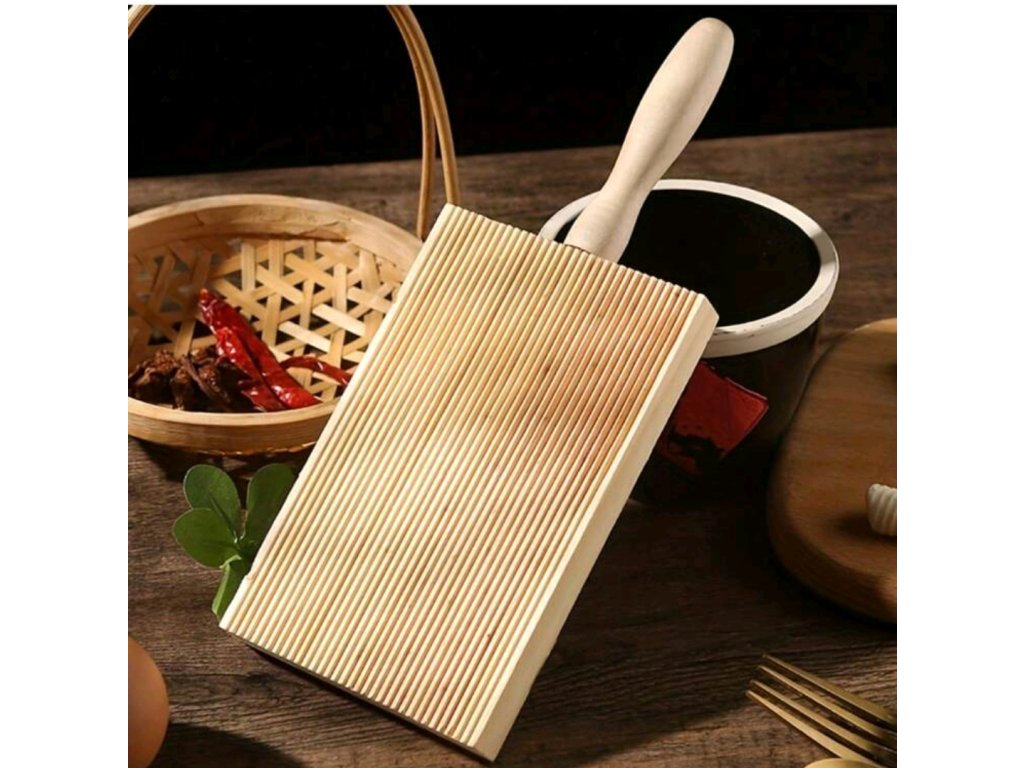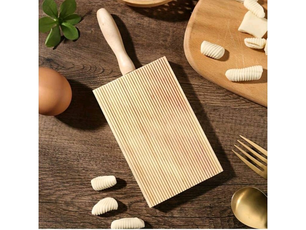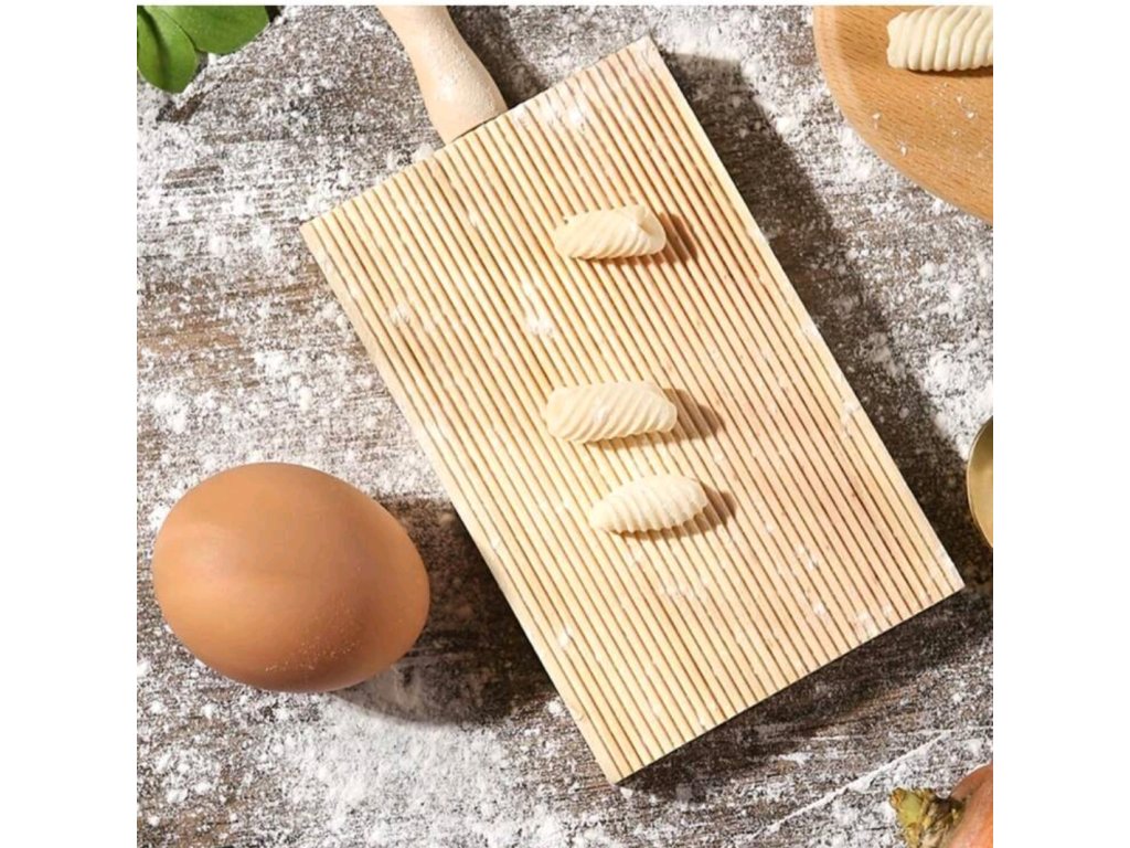Na desce z robustního bukového dřeva můžete tvarovat noky, trubkové těstoviny , gnocchi .