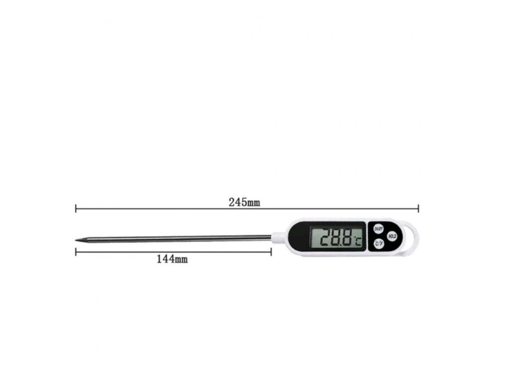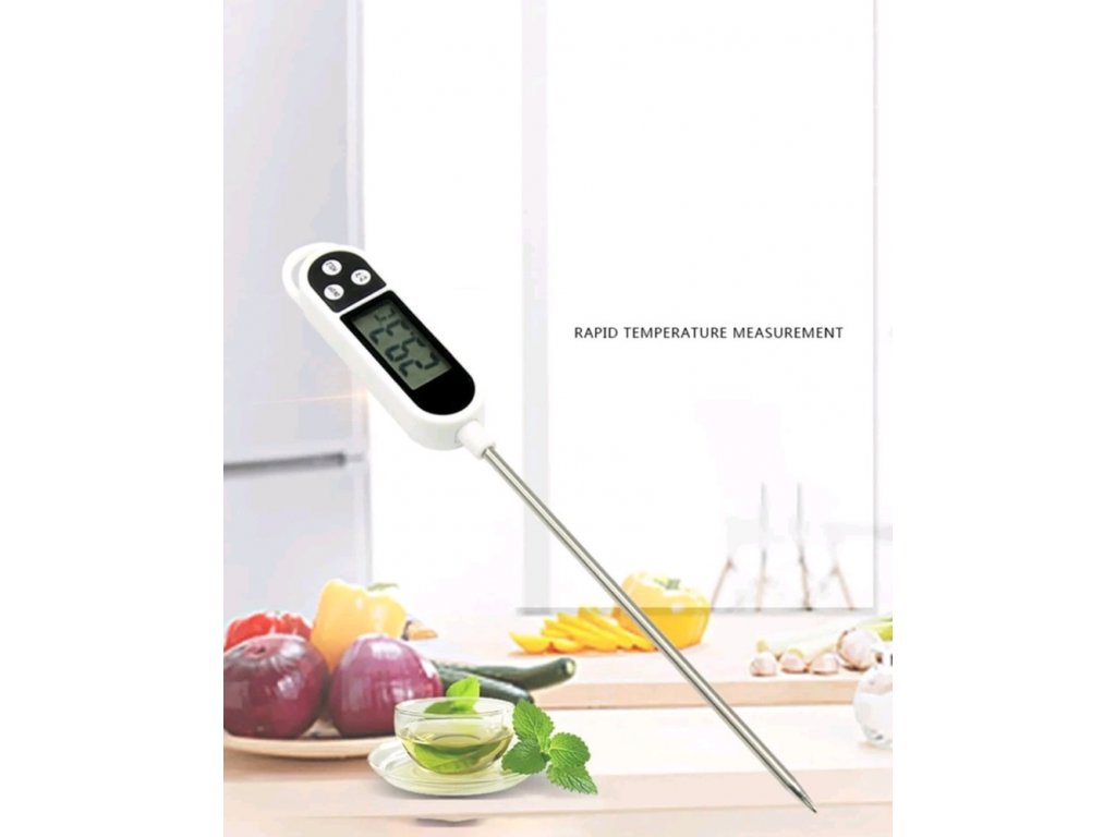 Digitální vpichový teploměr, jehož měřící sonda je dlouhá 140 mm je vhodný pro kontrolu teploty jídla a nápojů (pečeně, dětské jídlo, čaj, voda, víno, fritéza, cukr, čokoláda atd.). Přístroj splňuje normu HACCP a má funkci automatického vypnutí.
