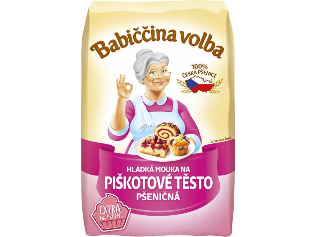 › SUROVINY K PEČENÍ A VAŘENÍ › MOUKY › Pšeničná › Babiččina volba Mouka pšeničná hladká piškotové těsto/dortová 1kg