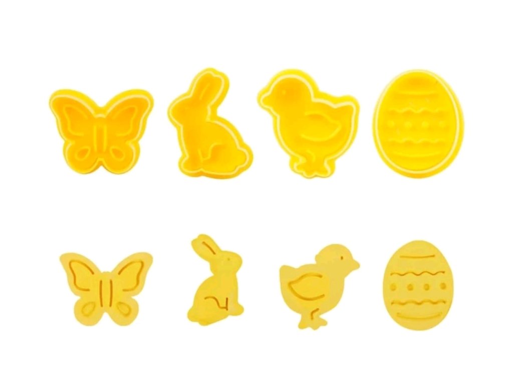 Připravte si na Velikonoce originální sušenky nebo perníčky v podobě zajíce, vajíčka nebo třeba kuřátka. Vykrajovátka jsou plastová. Pro lepší vykrojení je na vykrajovátku jednoduché tlačítko, po jehož zmáčknutí se těsto z vykrajovátka snadno vyndá. Balení obsahuje 4 kusy.