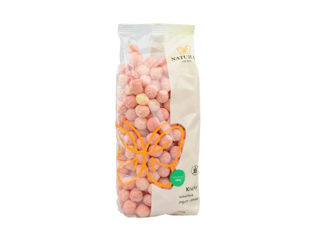 Extrudovaná kukuřičná krupice, jogurtová poleva - 20% (cukr, rostlinný tuk (palmojádrový, palmový a shea), sušené MLÉKO odstředěné, sušená SYROVÁTKA, sušený JOGURT - 1,6%, emulgátor - SÓJOVÝ lecitin, regulátor kyselosti - kyselina citronová, aroma, jedlá sůl), tmavá poleva - 20% (cukr, rostlinný tuk (palmojádrový, palmový a shea), kakaový prášek se sníženým obsahem tuku (20 %), emulgátor (slunečnicový lecitin), aroma, sušené MLÉKO